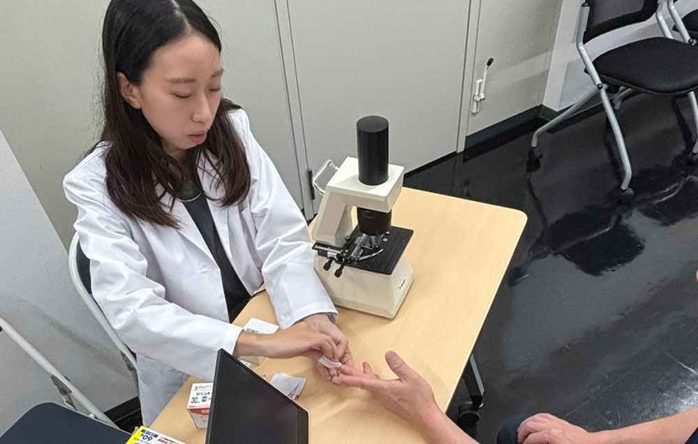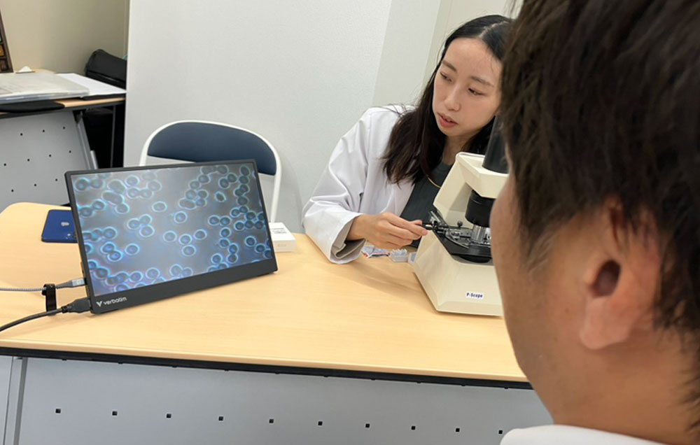 働く世代に必要な“代謝とミネラル”についての講話や、希望者には血液チェックにより、顕微鏡で体内を“見える化”体験ということで、赤血球のかたちや動きから健康状態を読み取る検査も実施いただきました。